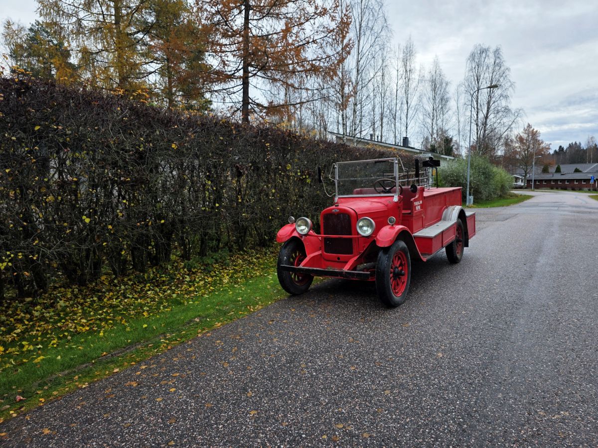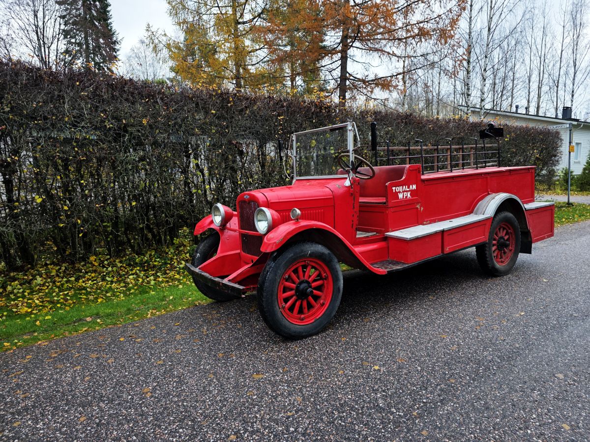 Auto on tyypillinen tuon aikakauden paloauto. Tuolloin oltiin vähitellen siirtymässä hevosvetoisista paloruiskuista ajoneuvokalustoon. Koritus tehtiin monesti omatoimisesti, vaikkakin 1930-luvun alussa oli jo muutamia paloautojen korivalmistajia.